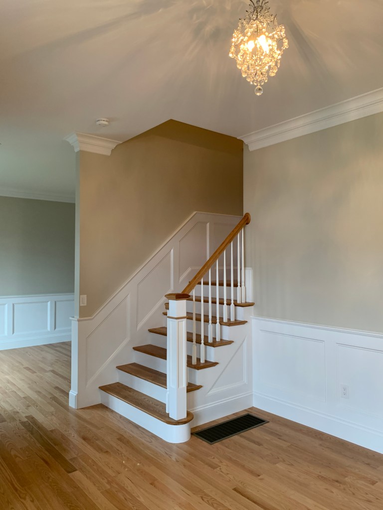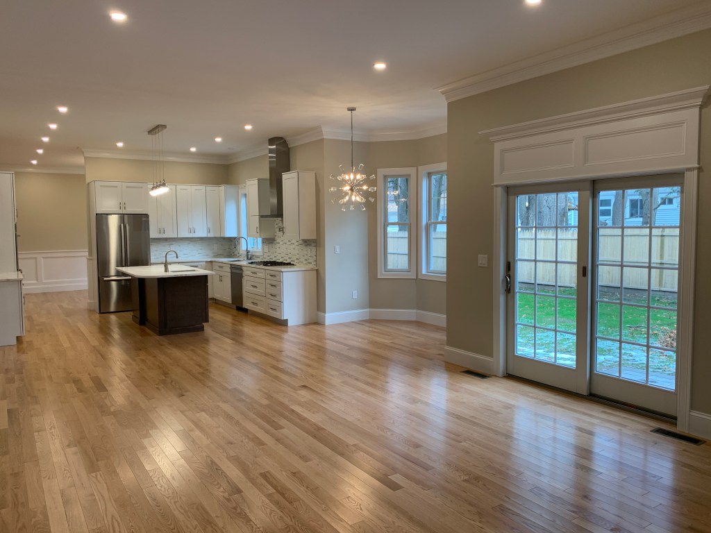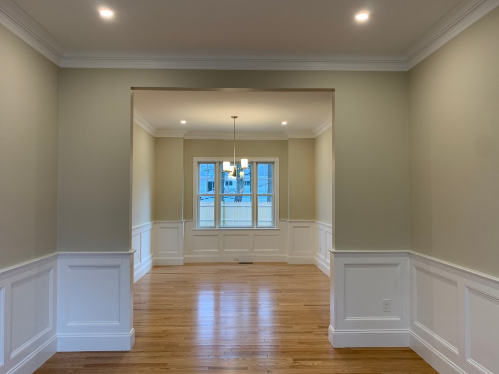 Beautiful new home on a quiet street. Open floor plan features a kitchen island that flows into a sunny breakfast nook bump out and family room with gas fireplace. Walk out to patio where you can grill and relax in private back yard. Entertain in formal dining and living room. Foyer, powder room, and mud area complete the first level. High ceilings, crown moldings, and wainscoting are featured on this level. The oversized master suite has trey ceilings, walk in closet, and master bath with soaking tub. There are 3 more generous bedrooms on this level each with its own private bath. Convenient laundry room completes this level. Finished basement has a large room, full bath, and open area suitable for a gym.